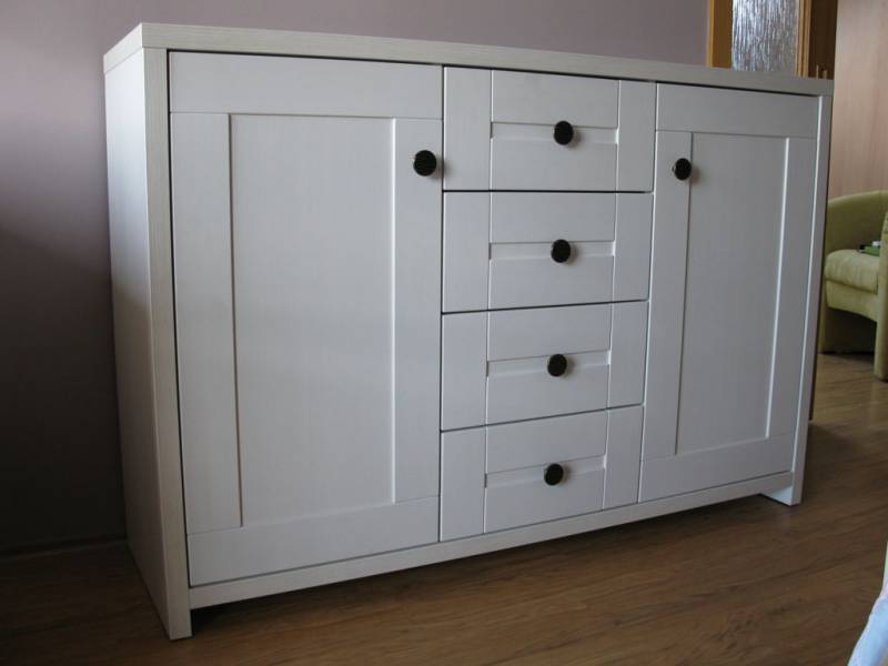 Dřevěné komody vyrábíme v provedení povrchové úpravy kartáčování a voskování nebo broušení, lakování a moření. Pro výrobu jsou použity masivní materiály z evropských dřevin, především dub, buk, jasan a javor. Nově vyrábíme komody, prádelníky a příborníky také v provedení Provence (patinované). Nabídku jsme nyní rozšířili o frézované úchytky.